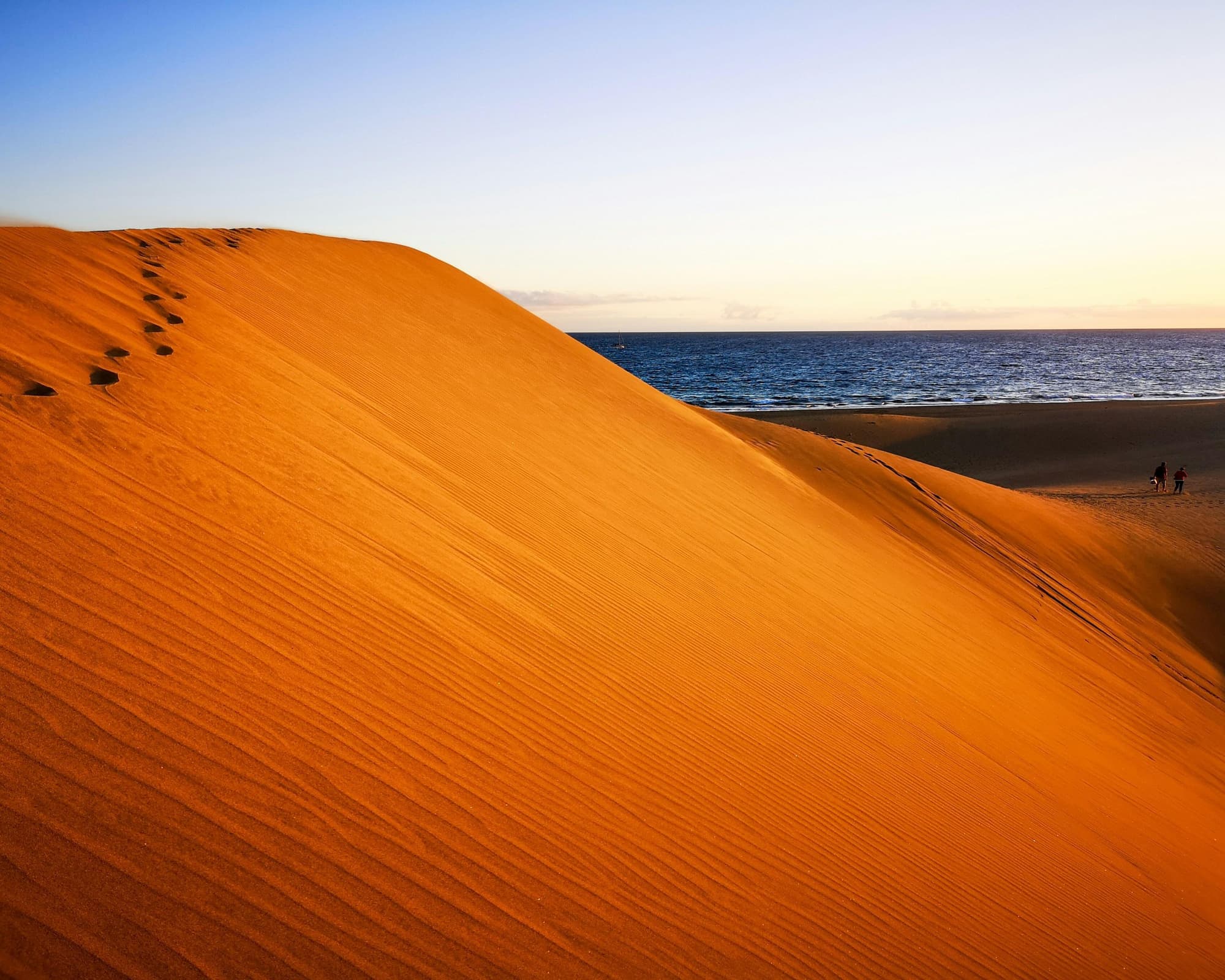 De Duinen van Maspalomas vormen een beschermd natuurgebied en bieden een spectaculair, bijna woestijnachtig decor dat zich uitstrekt tot aan de Atlantische Oceaan. Het is een unieke plek voor wandelingen bij zonsopgang of zonsondergang, waar het zand goudkleurig oplicht in het zachte licht.